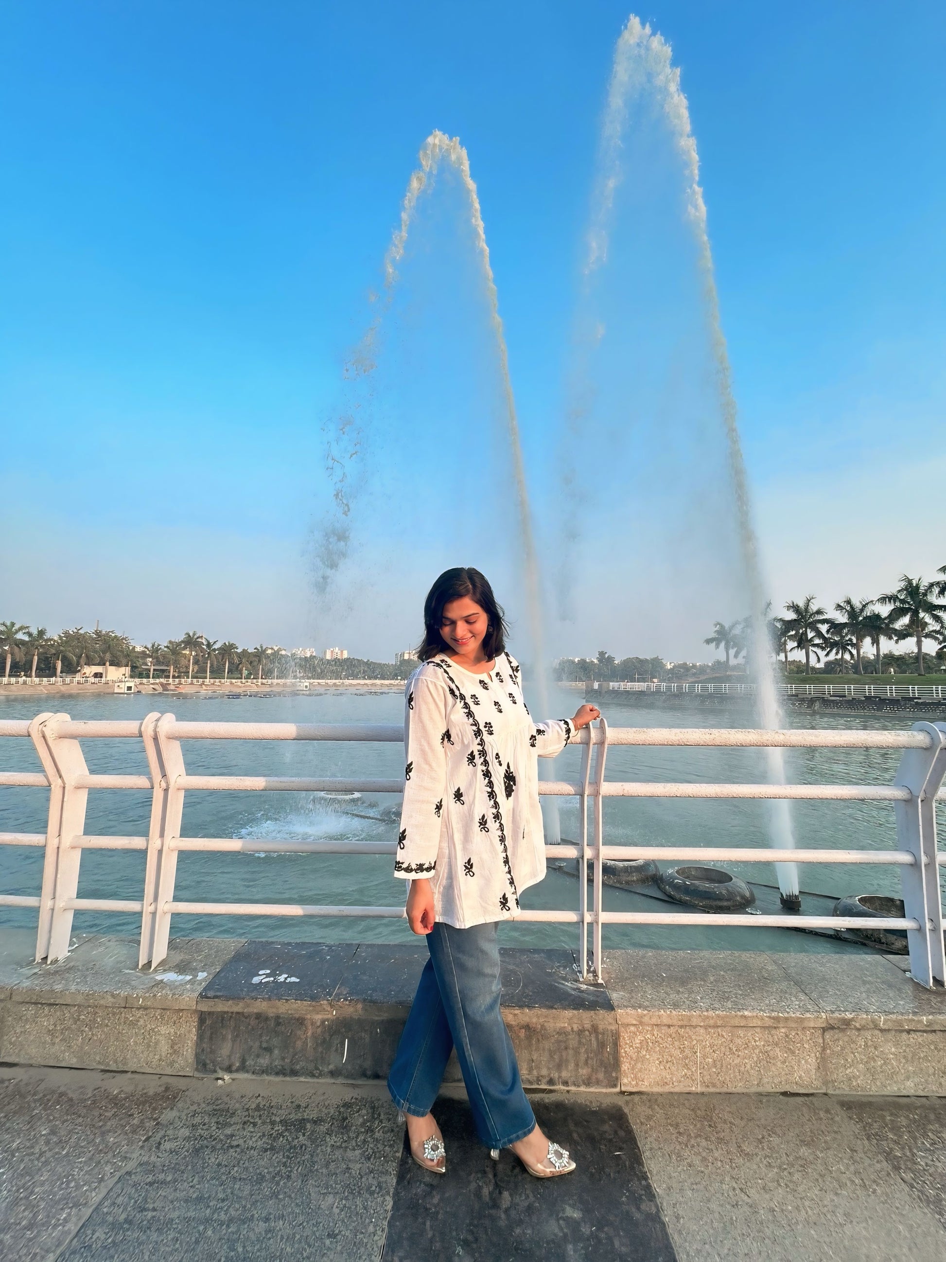 - Work: Authentic hand-embroidered black thread Chikankari motifs
