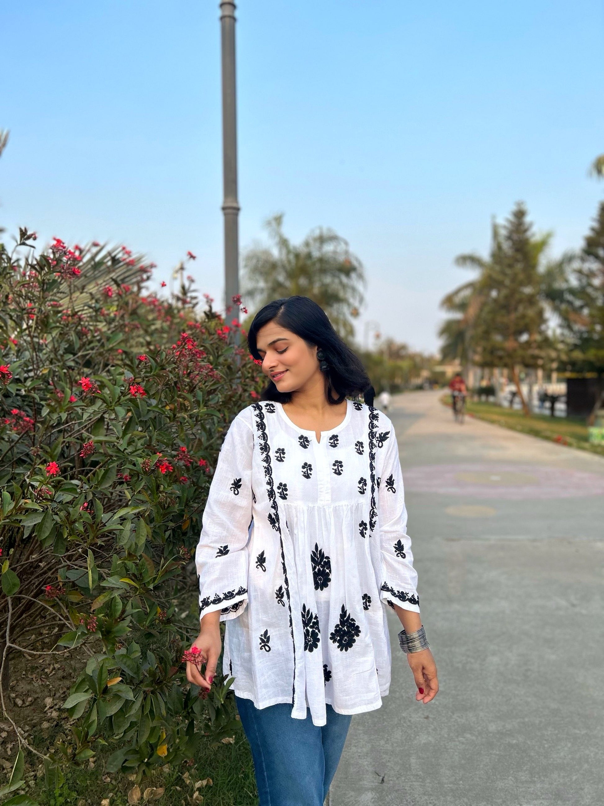 - Chikankari Kurti with Black Thread Work